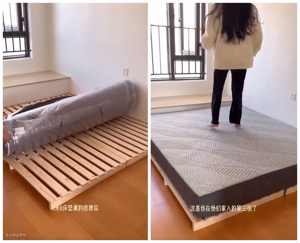一张大床垫,可能是这次改造最贵的东西,不过铺上以后却非常合适,将床榻部分与飘窗连接起来,飘窗也能当做床头柜或者置物区。
