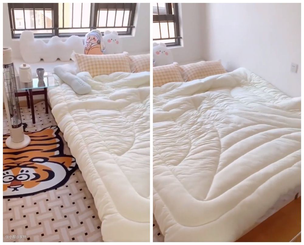 接下来就是各种床品,尽量选择蓬松柔软的浅色被褥和枕头,不仅带来更加温馨舒适的居住感受,同时也在视觉上显得十分温暖。