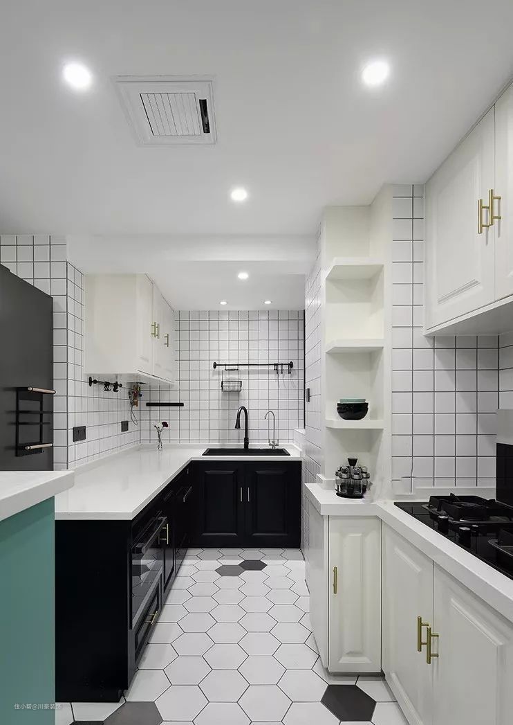厨房需要有充足的收纳空间,满足日常瓶瓶罐罐和碗筷的收纳。设计壁龛能拯救厨房台面的收纳问题,让整个厨房空间看着更加干净、利落。