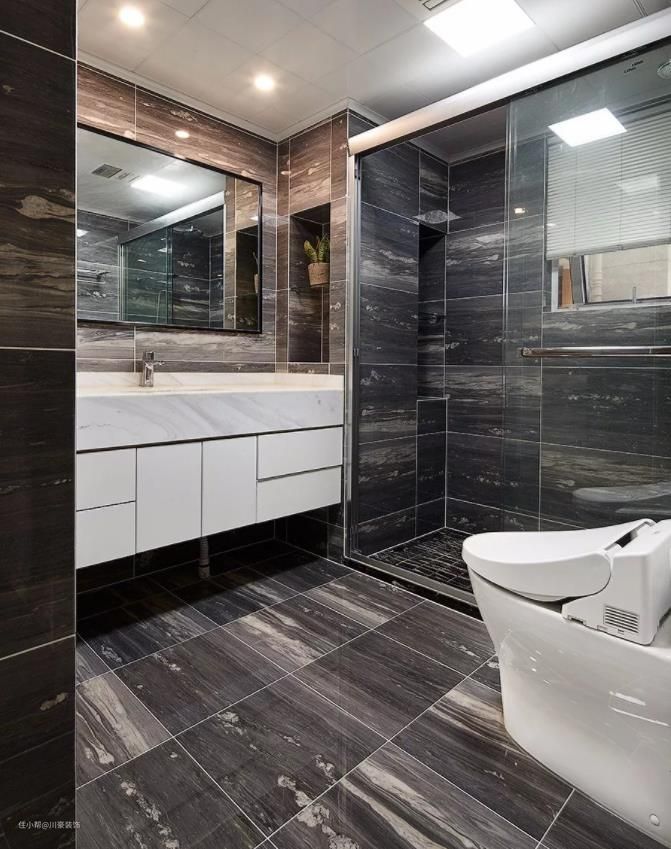 壁龛的设计在卫生间的运用是最常见的,淋浴区、洗漱台上方、马桶上方都可以设计壁龛,让洗漱用品有了容身之处,还省去了收纳用具。设计的造型能够很好的与墙面融为一体,美观实用。作为收纳架or收纳板,铁的怕生锈,木的怕掉色,只有壁龛才能拯救潮湿的卫生间。