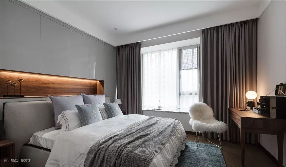 卧室壁龛完美的兼容了床头柜的功能,很适合小空间没地方放置床头柜的户型。需要注意的是,东西不能放置太满,影响美观。