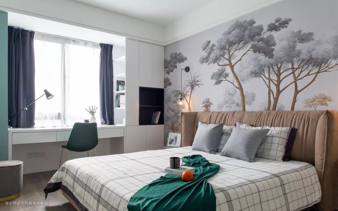 ②书桌和窗户之间要预留窗帘的缝隙,一般在15cm左右,如安装了电动窗帘,应在20-25cm之间;