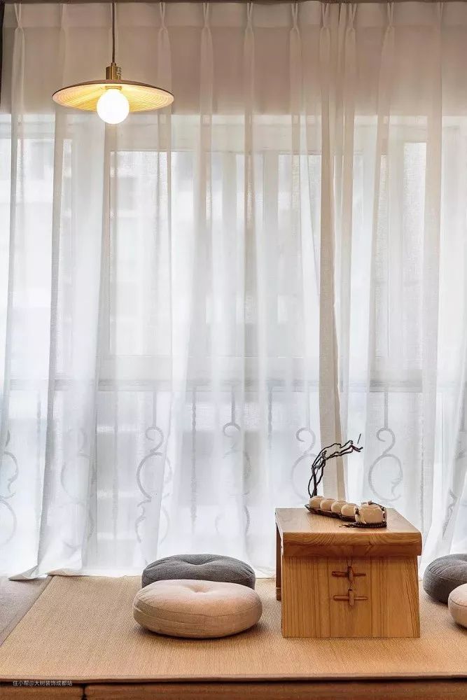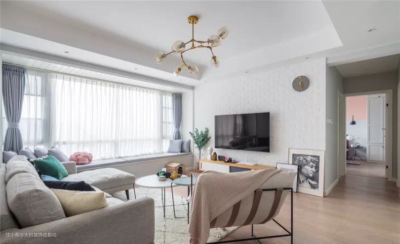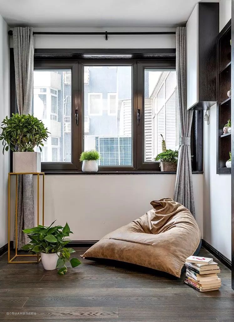 可以将飘窗改造成榻榻米,或者在飘窗下放置一个懒人沙发+小桌子,打造一个公共休闲区。