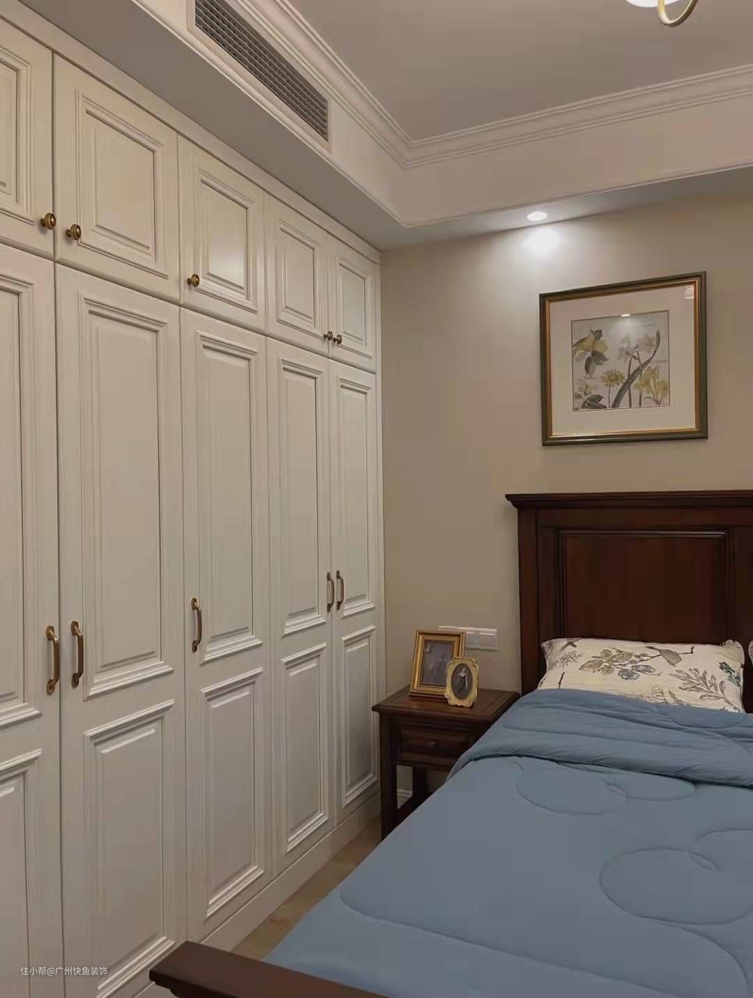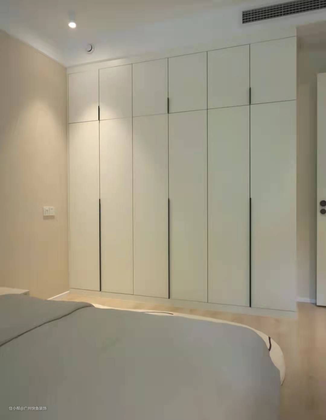 - 比较常见的是下图这样的嵌入式衣柜,推拉门的款式让靠着衣柜的地方摆放床头柜更加的方便,也可以直接把床靠着衣柜摆,更省空间。