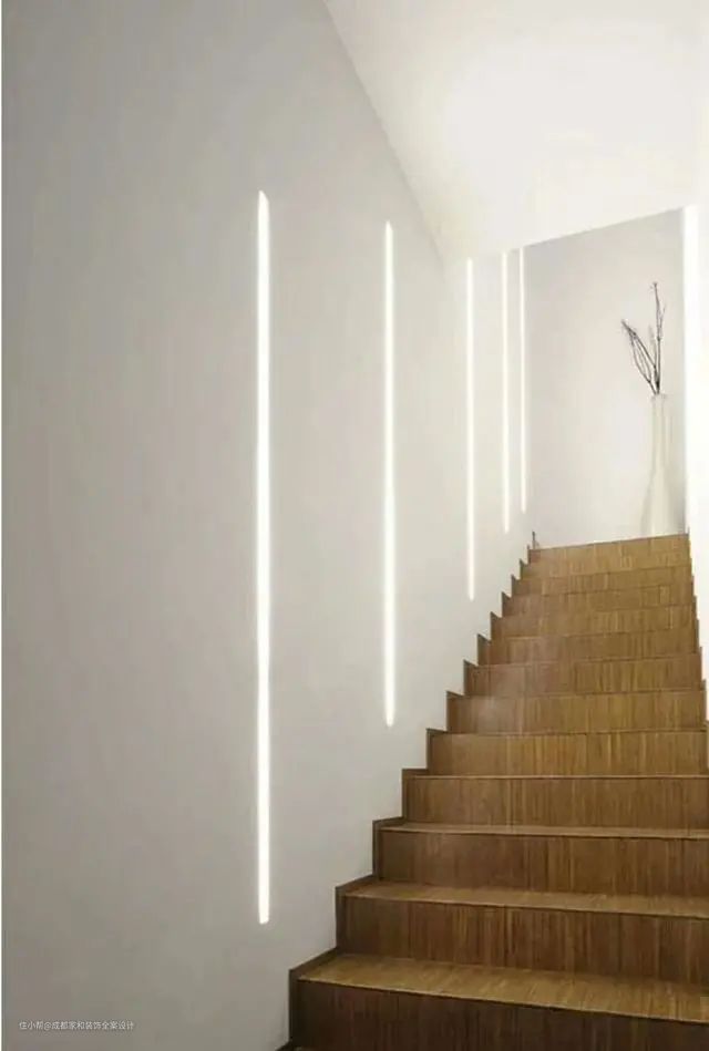 如果想要更简洁现代的感觉,还可以利用金属线条来装饰墙面,甚至可以用到线型灯作为墙面设计的一部分。