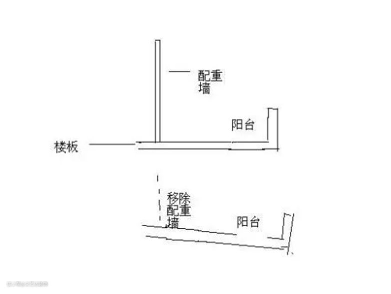 配重墙就像秤砣一样,维持着建筑的平稳,如果任意拆除配重墙会导致重力不平均,会有建筑倒塌的风险,为了你和邻居家的和谐,这个墙一定不要动,多少钱都不能动!!!