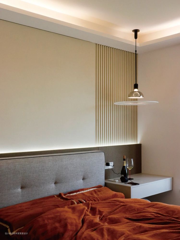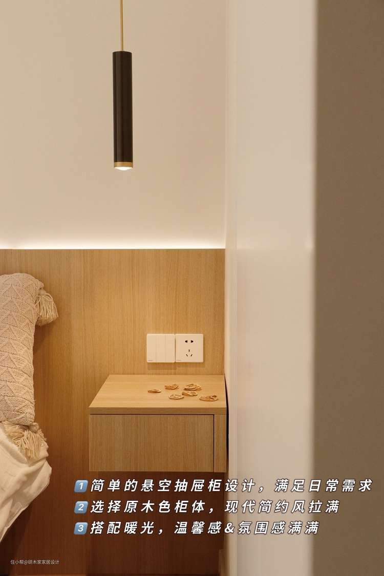 ①床头柜是选择了悬空设计的,尽显高级&设计感;