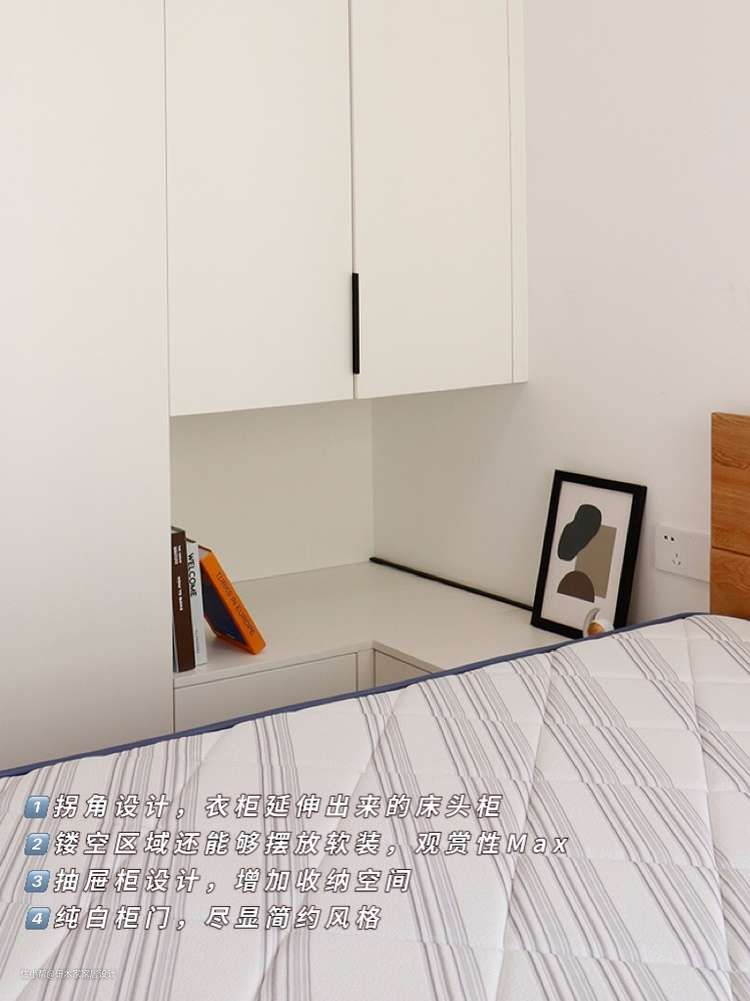 ①拐角设计,衣柜延伸出来的床头柜设计,让整体设计感更加独特;