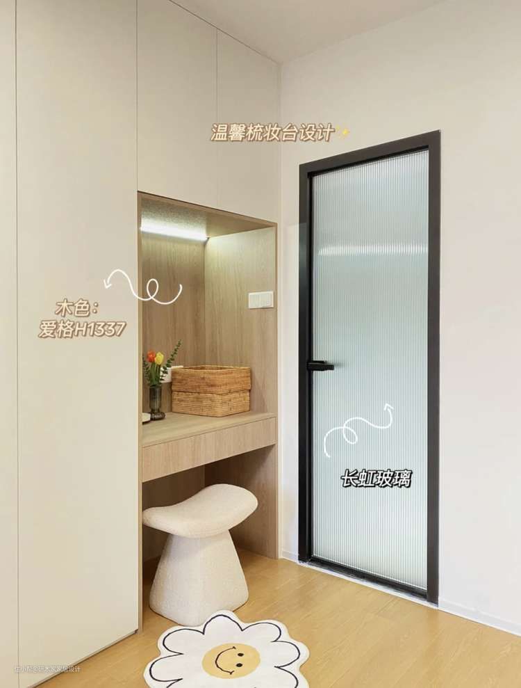 侧边保留了悬空梳妆台设计,独立个性的视觉构成,轻盈又不压抑,太治愈的衣柜设计❤