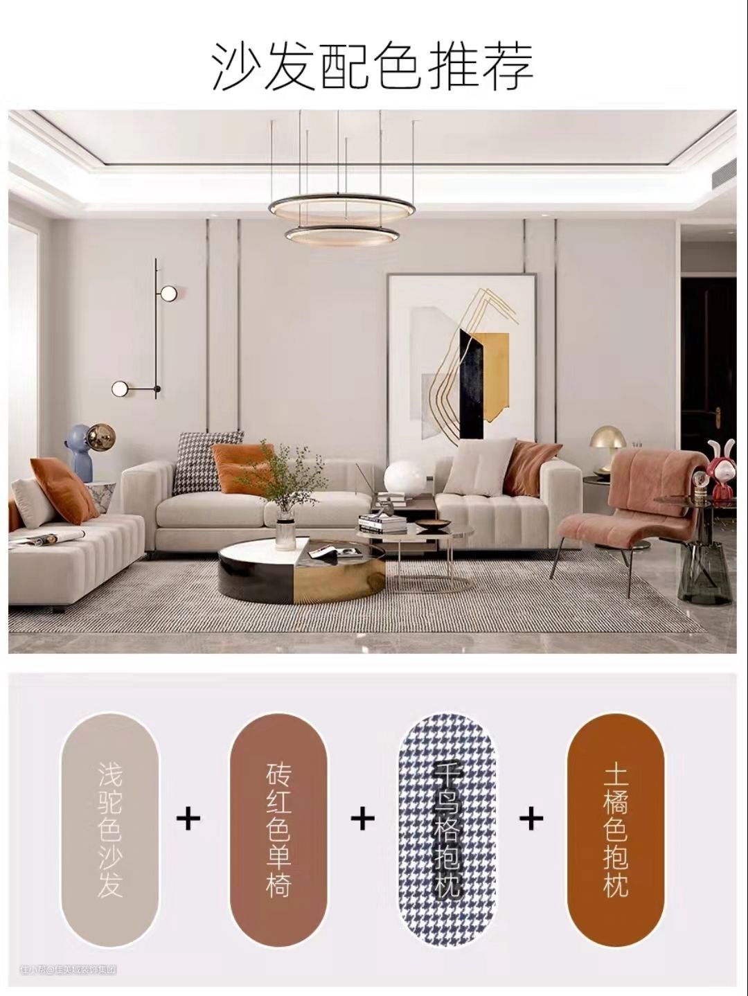 🔵浅驼沙发+砖红色单椅+格纹抱枕+土橘色抱枕: