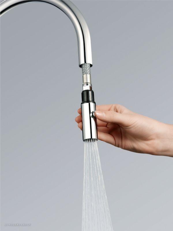而且,一款抽拉水龙头除了可以切换两种水温以外,还可以切换不同的出水方式,柱状的,切片式的,或者花洒式的,非常实用。