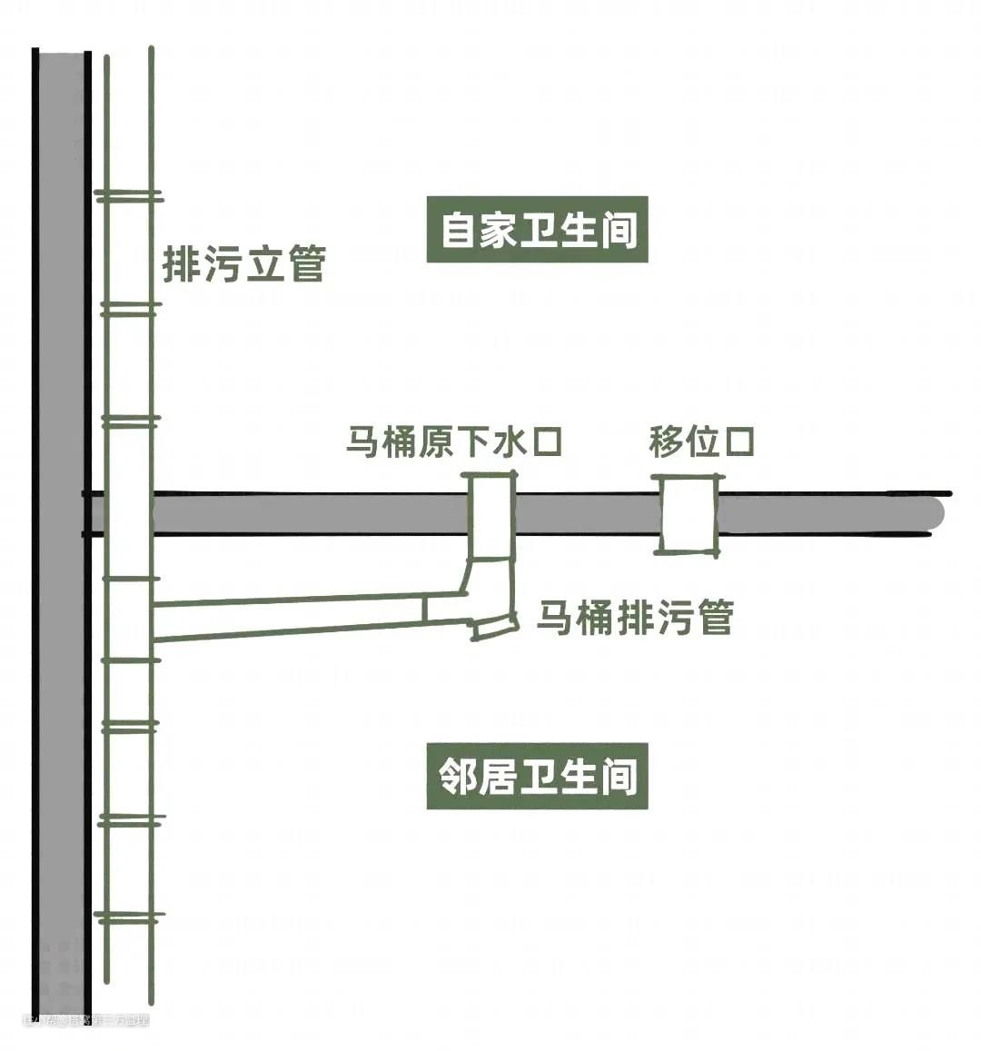 这可以理解为跨楼层排水改造。主要适用于卫生间排水类型为隔层排水的空间。当然,我们必须提前与楼下的邻居沟通,协商这种方法的改造。没有其它什么需要特别注意的。唯一的核心是如何说服楼下的邻居。如果使用这种方法,改造既简单又方便,对马桶和排水的布局没有任何限制。