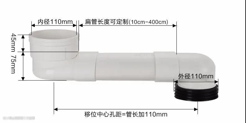 带接头的椭圆扁管马桶移位器:椭圆扁管移位器主要由专用接头组成,同时连接可调长度的椭圆扁管。这个扁管通常是110管径,高度约60毫米。这适用于长距离移位。但移位距离不得超过500毫米,使用扁管移位器的一个很大缺点是增加了卫生间垫层的高度,距离长,容易堵塞。因此,在施工过程中,每当位置移动100毫米,管道需要提高5毫米的坡度,只有这样保证其正常的排水作业,不会造成堵塞。