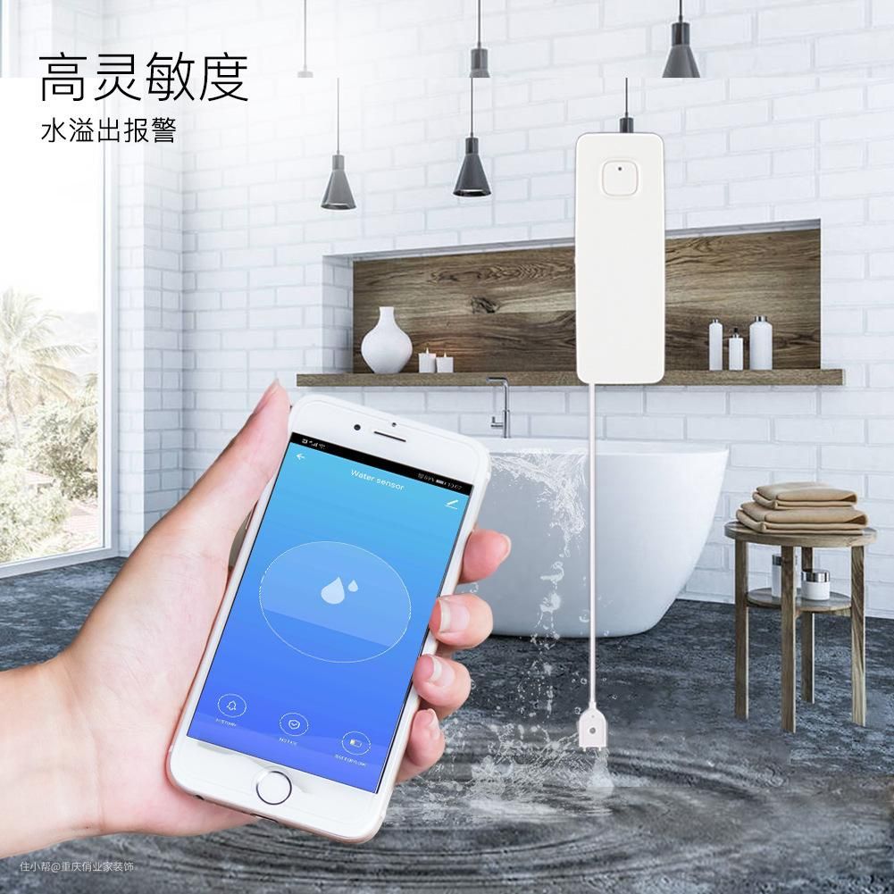 水浸报警:水浸报警器自带水浸感应头,一旦水没过水浸感应探头便会向app发出提醒,预防漏水、忘记关水等造成更多损失。