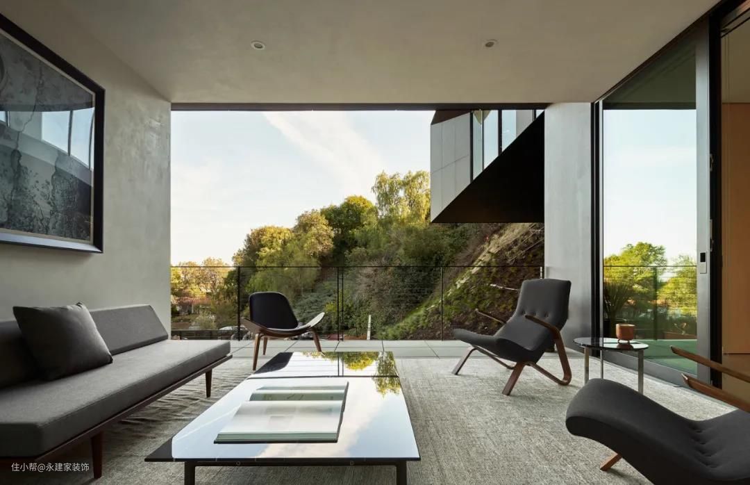 垂直的表面用落地窗玻璃来营造出通透与开放