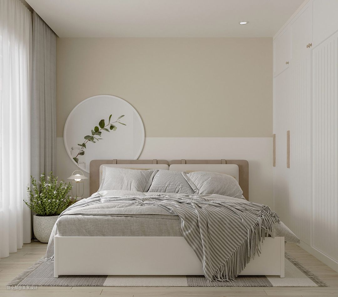 明亮的白色装饰、天然木材元素和清新的浅绿色色调塑造了这两种温馨室内设计的通风客房。由Elemental Design可视化,这两种装饰方案的特点还在于一系列可爱的曲线,这些曲线以彩绘墙壁、赛道镜子和曲线美的衣柜设计的形式出现。