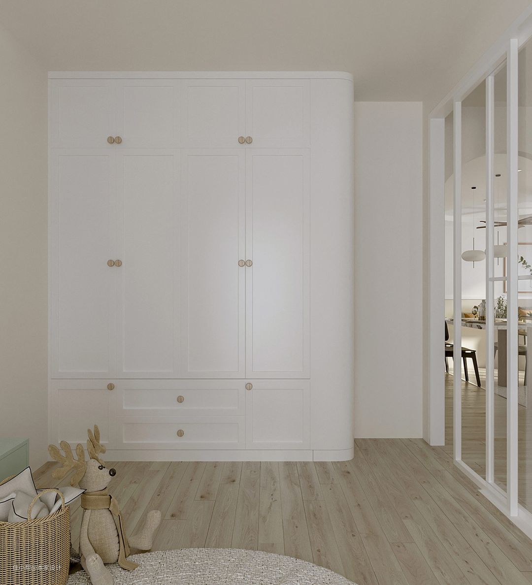 玻璃墙儿童房配有另一个漂亮的定制衣柜设计。