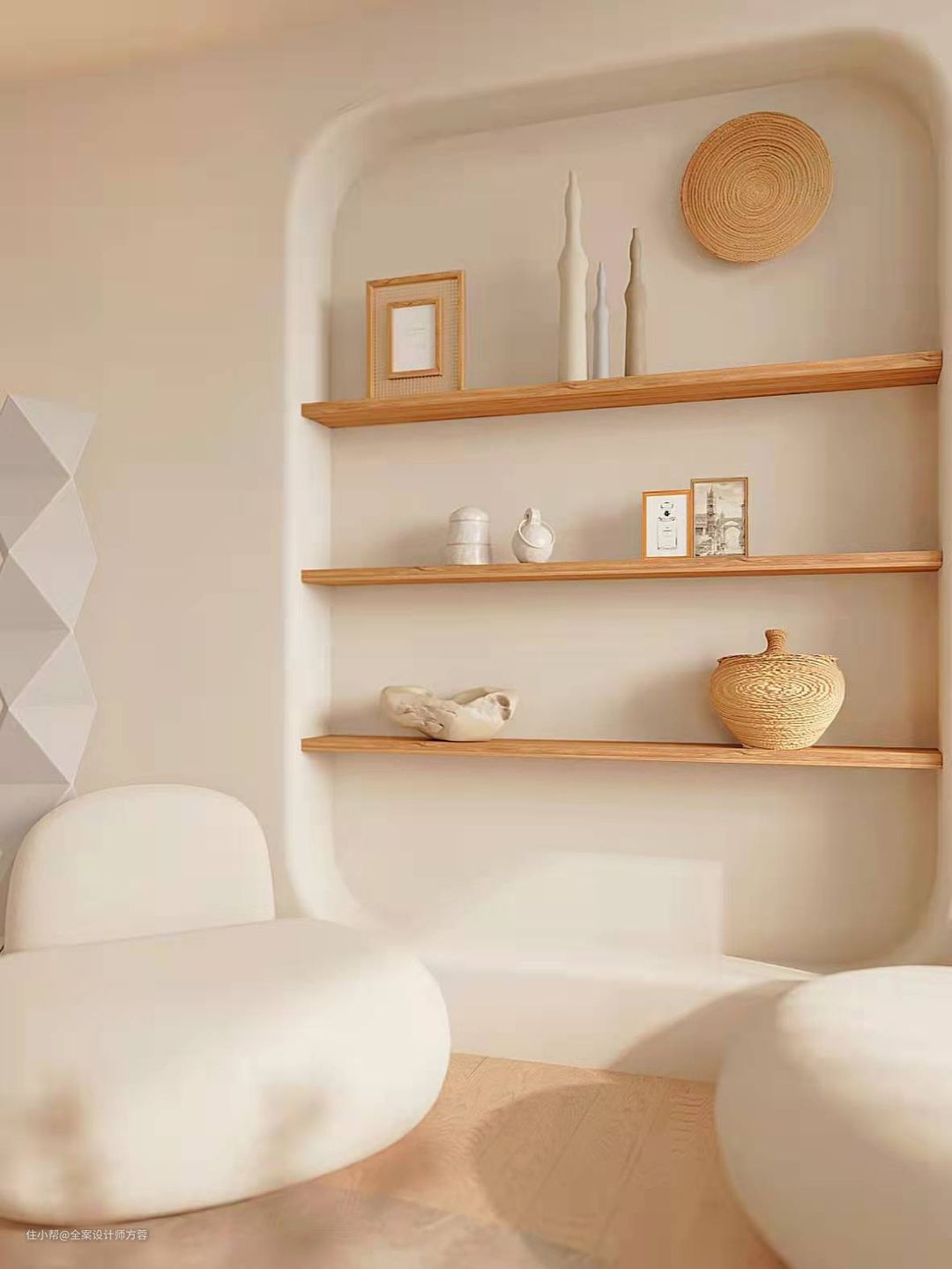 弧形设计是奶油色家装中最常见的元素,如拱门造型、圆弧窗口、半圆形壁龛等,直线被柔美弧形中和,弱化了空间的生硬感。