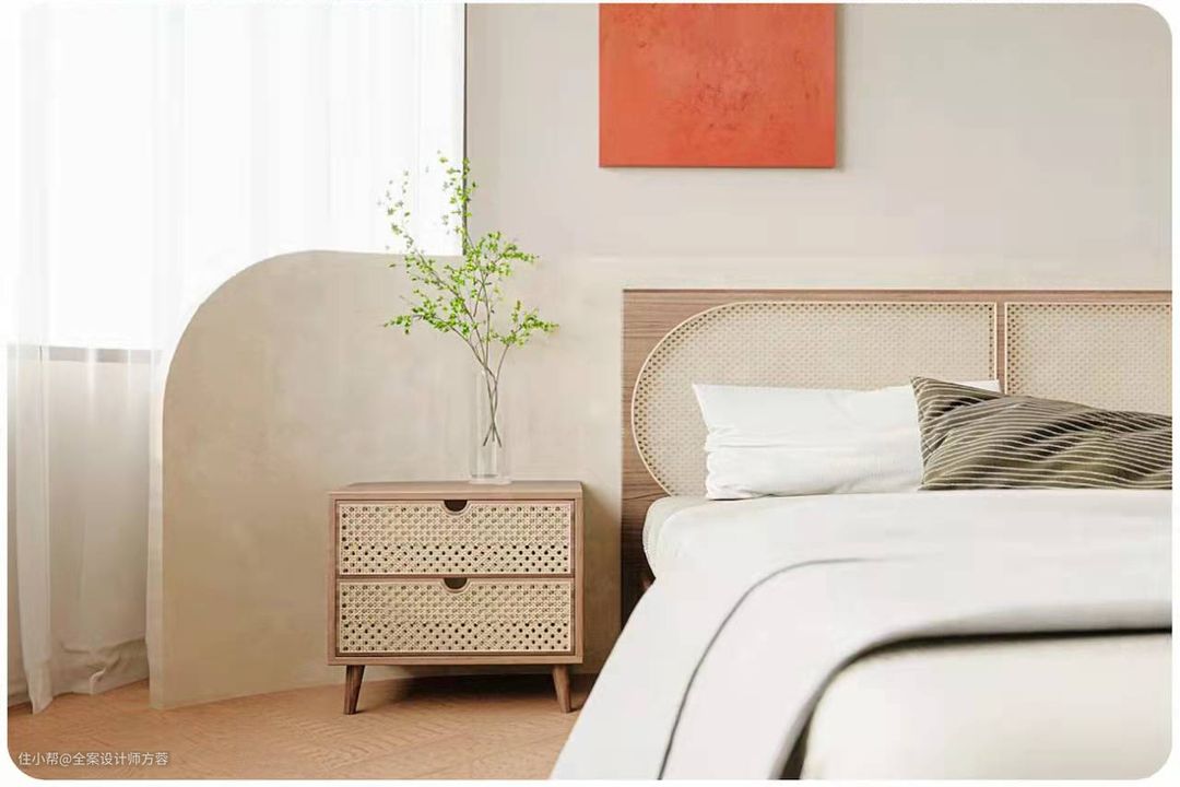 奶油色本身给人的质感就是细腻温柔,在家具材质的选择上,多选用羊羔绒、绒布、亚麻、亚克力、原木、藤编等,自带温暖气息,和谐搭配整体空间氛围。