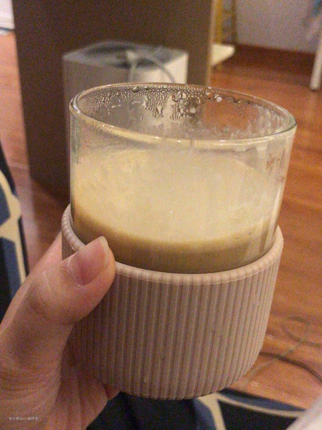 而且不能放太久,否则果肉会沉淀。沉淀后果汁的颜色甚至会变成半透明,杯底能看见厚厚一层果肉。