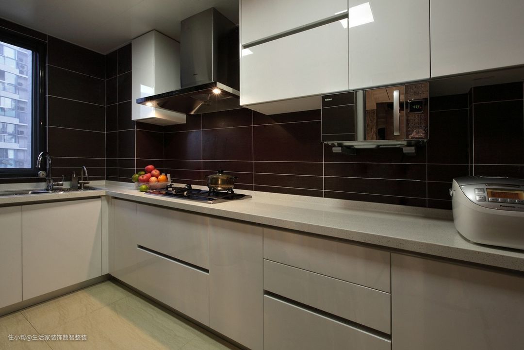 采用的对比反差较大的两个色系,把平时热火朝天的厨房降低了烦燥感,使主人为家人做饭时能更得心应手。