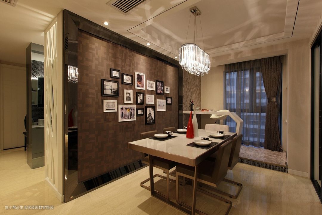 餐厅延续了客厅的风格与色彩,餐桌旁的小吧台,同时丰富了生活仪式感,又与用餐人的互动性。