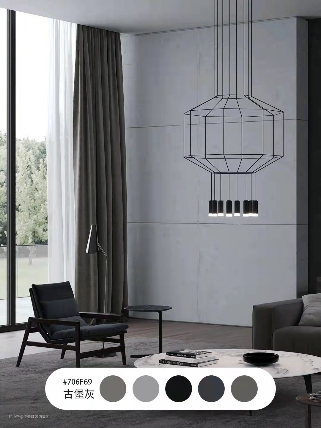 6、古堡灰:带点棕调的深灰,于灰度的空间中,呈现递进式的铺展,悄无声息之中,营造出丰富的层次感。