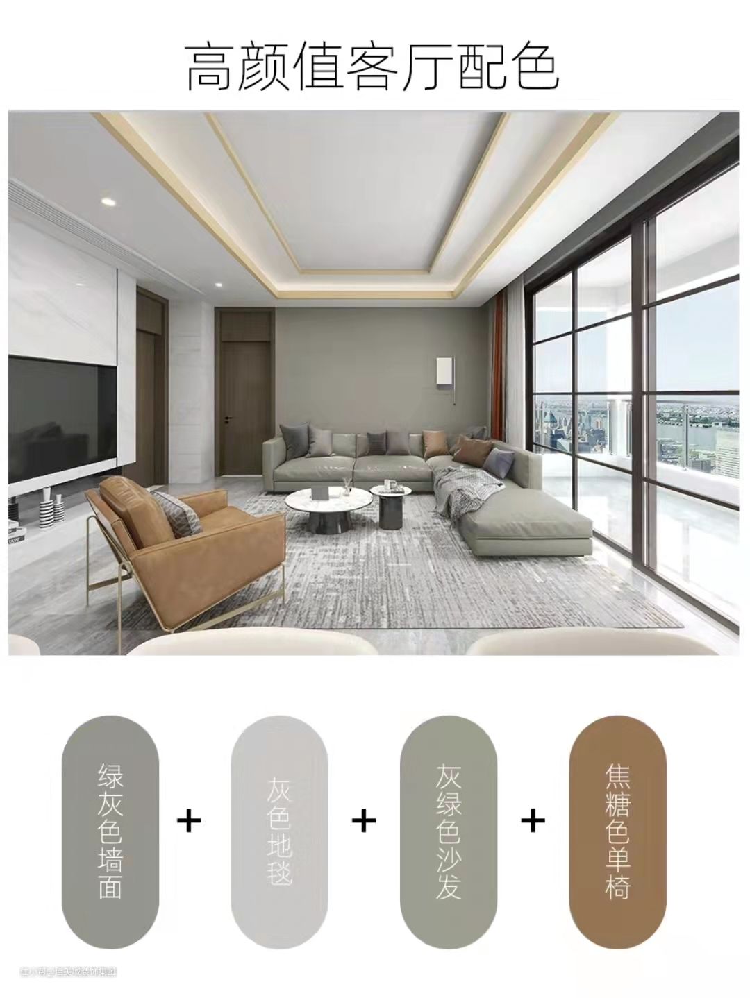 高级时尚的客厅配色,沙发+墙面+窗帘