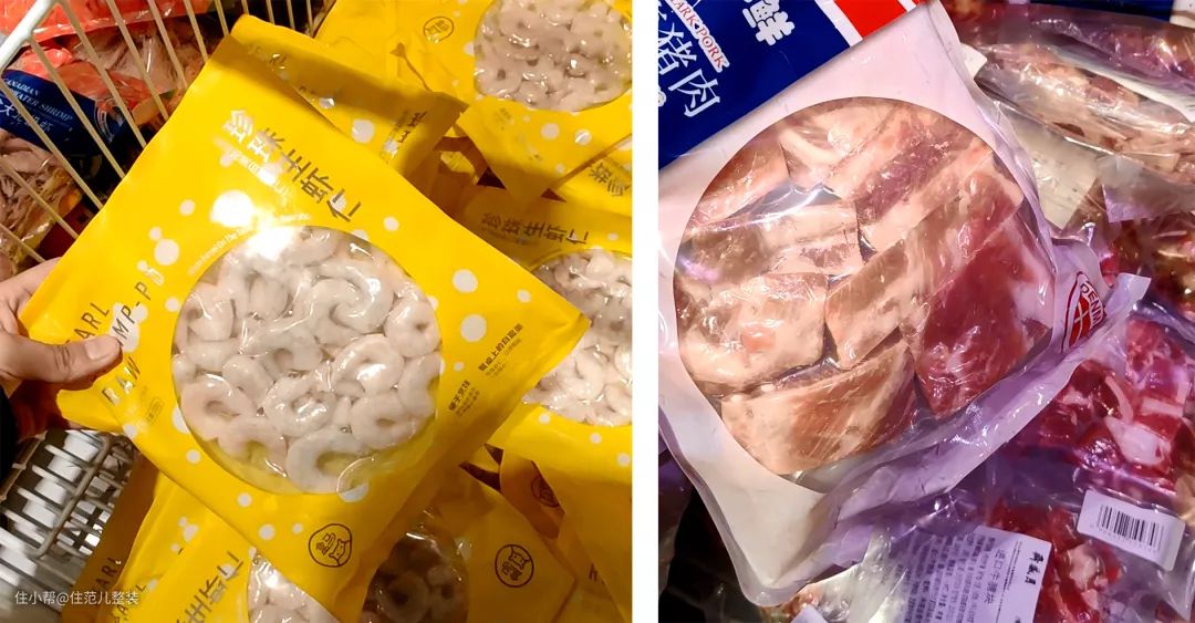 其他没有包装的食材,就必须得先装进保鲜袋,水平放置在冷冻柜内,冻瓷实了再垂直收纳。