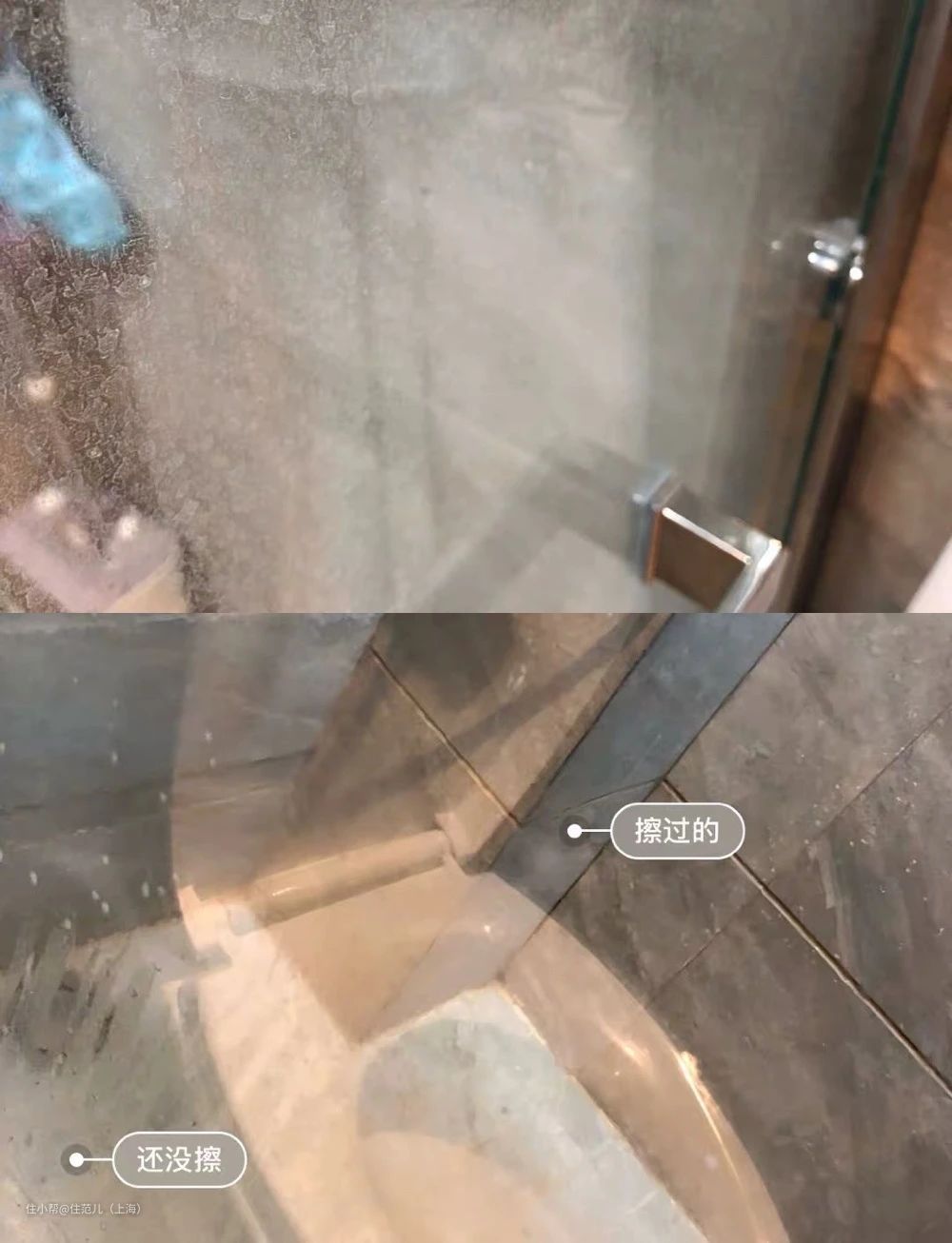 洗完澡不及时刮玻璃的,等想起来再擦保洁阿姨都救不了你。