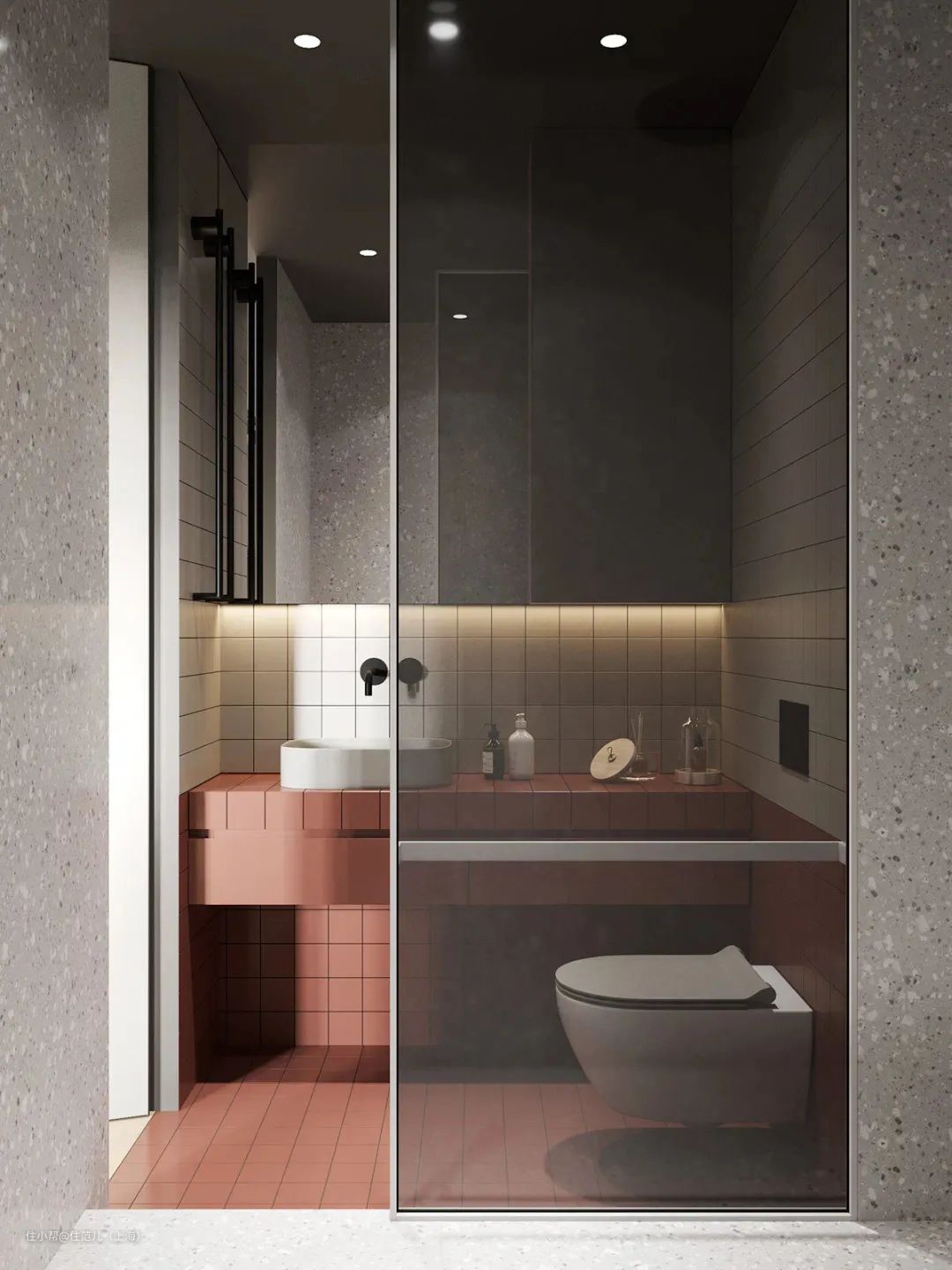 多水区域地板和墙面,用黑色或者深色的勾缝剂倒也会省心不少。