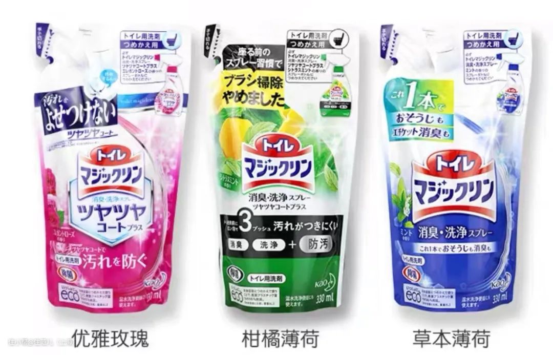 自带香气的洁厕剂,有薄荷味、玫瑰味和柑橘味,喷出来是细腻的泡沫状。