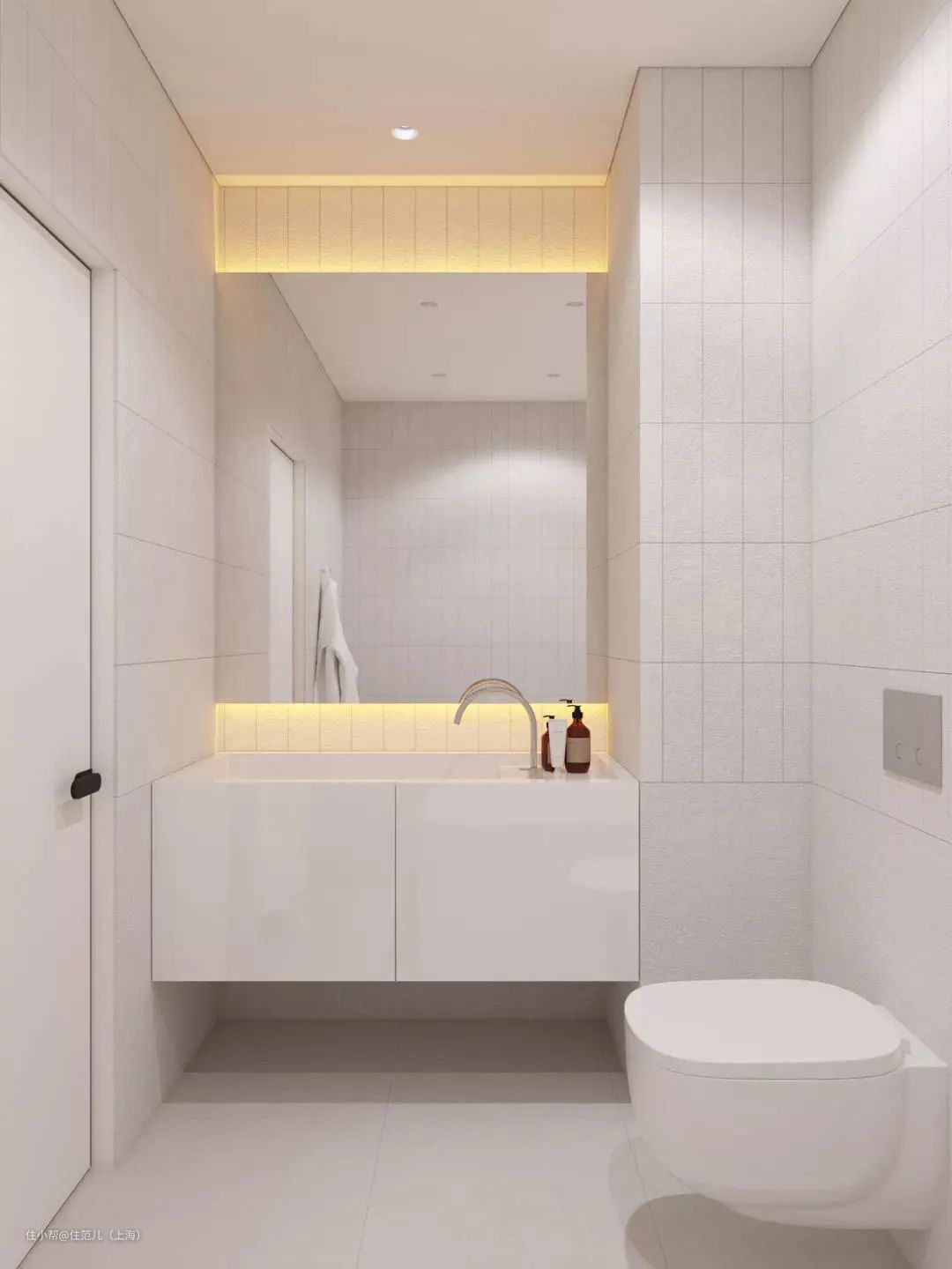 如果小区采用的是墙排水,你可以轻易通过安装壁挂马桶和不落地的浴室柜,省下很多搞卫生的麻烦。