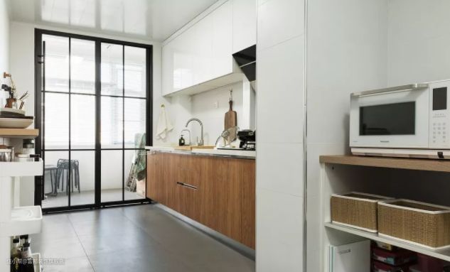 厨房的门要防火防油烟,实木门贵、烤漆门费,玻璃门是最适合不过的,优点非常明显: