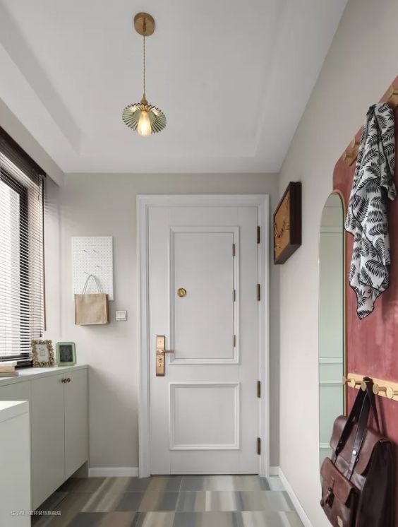 说个题外话,现在很多门都是红棕色,你对颜值要求再高,一个红棕色防盗门就足以让你前功尽弃。如果实在嫌弃可以自己刷漆换个色或者用现在比较流行的——毛毡门贴,质感高级并不会给人一种假假的感觉↓↓