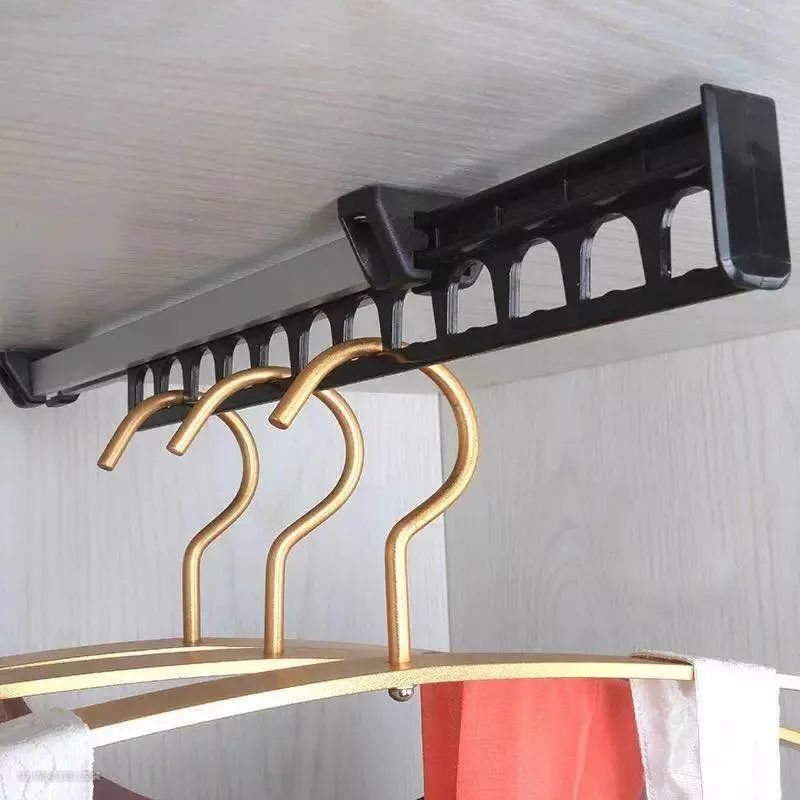 伸缩分层置物架也能把层板的鸡肋空间利用起来,可以伸缩,适用于各种长度的衣柜。