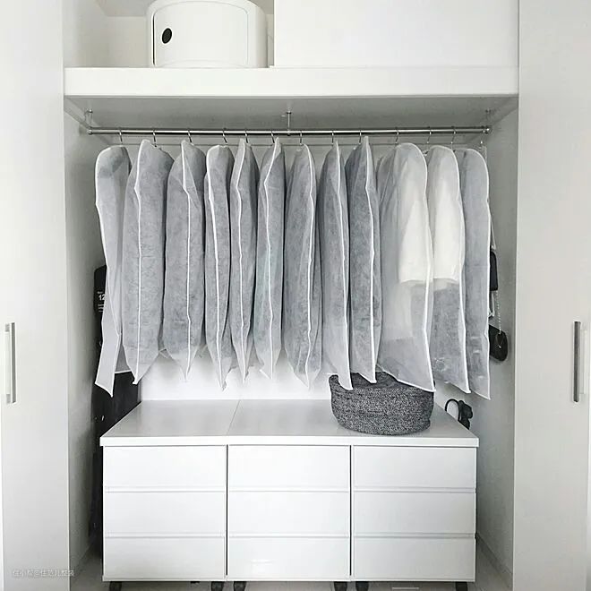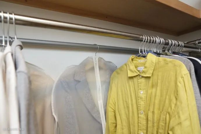 比较贵重又怕皱的衣服,可以用防尘罩挂起来收纳,买长一点的防尘罩,长衣短衣都适用,也更整齐。