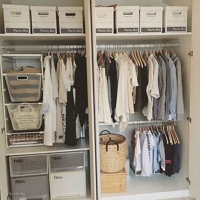 衣柜最鸡肋的层板,只要放上带把手的收纳盒,一秒变抽屉,利用率大大提高。