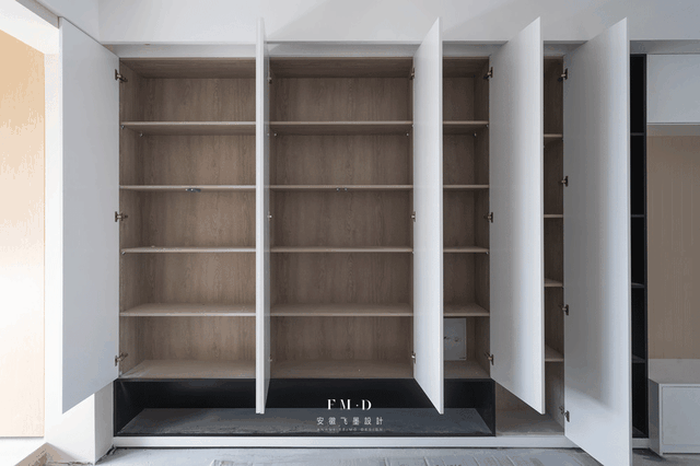 预留的冰箱位置侧面的混油门板,内部是隐形柜,不浪费一寸面积,收纳多10㎡都不止。