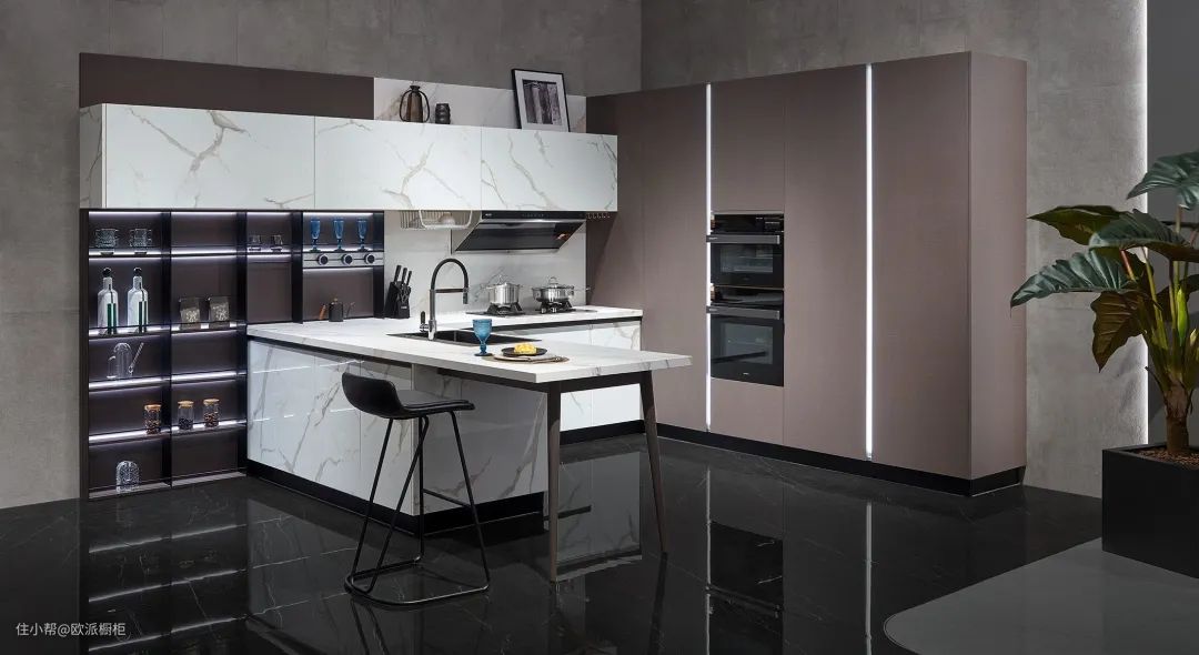 如果你喜欢极简设计,又热爱浪漫与纯粹,那下面这款便是你的“意中人”。无论从配色还是设计上它都受到了华尔兹圆舞曲的艺术启发,加上U型的灵巧布局为多人同时备餐提供了更充裕的空间,处处透露出精致的空间美感。