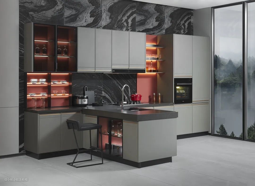 除了是气氛组的代表,这款橱柜更是高颜值选手!智能感应层板灯为厨房打造一道独特的风景线,轻轻触碰,便能点亮空间,灵动感十足,为厨房增添了一股淡雅又不失活泼的风情。