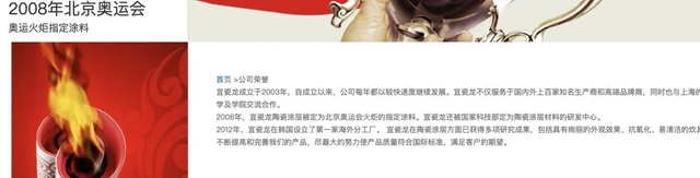 宜瓷龙是中国企业,专门做这类新材料的,是陶瓷涂层公司中的头部企业,北京奥运会火炬的陶瓷涂层就来自宜瓷龙。