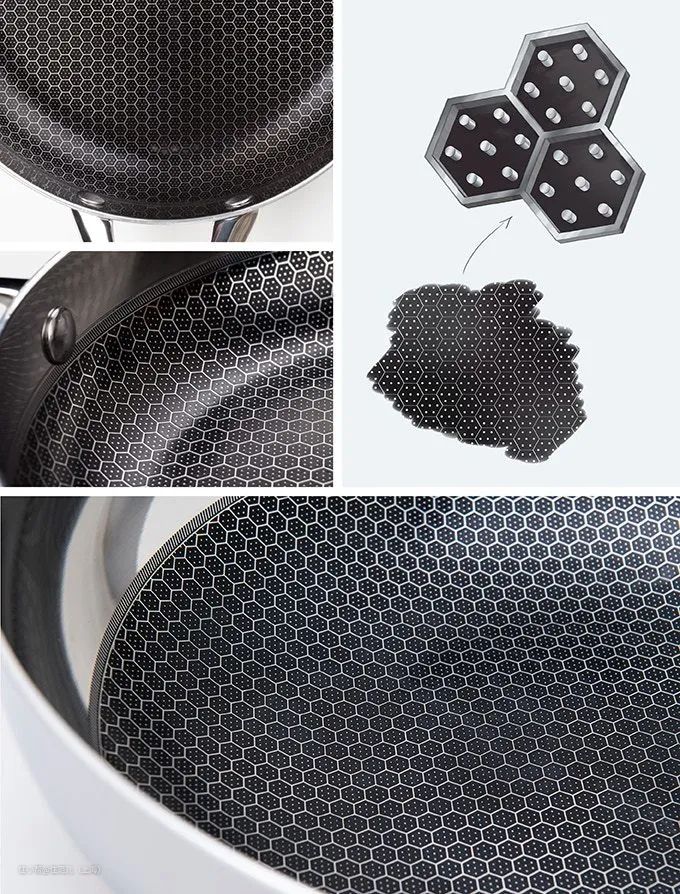 4. 蜂窝结构锅适合炒菜,平滑涂层锅适合煎