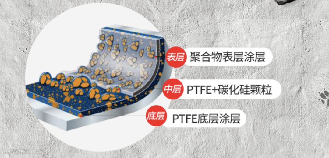 归根结底还是强化PTEE的不粘效果,利用凹凸不平的表面,来减少接触面积——所谓的“物理不粘”就是这种。