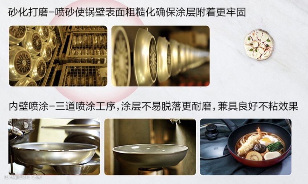 不粘锅的核心就是涂层,市面上所有宣传的工艺卖点都是加固含氟涂层or装饰。