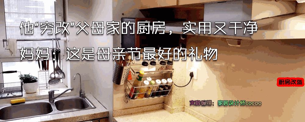 经过几天的改造,他仅仅花费了千元就把厨房改造的既实用又干净,解决了许多生活痛点,妈妈感动地说:这是母亲节最好的礼物!