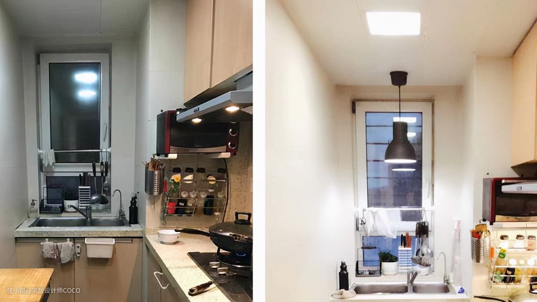 前后对比效果明显,整体亮度提高了许多,空间看起来也亮堂了起来。