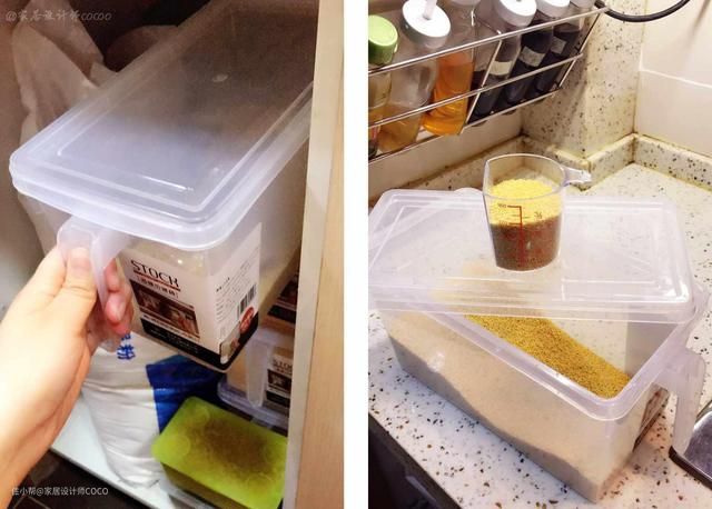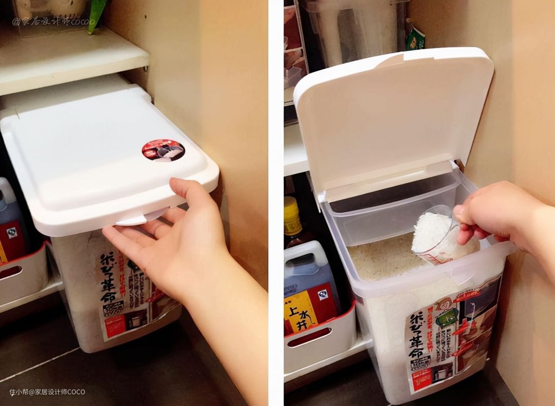 男主购买了加长的米箱,它可以收纳很多的东西,一个柜子内一共用了三个,就把所有物品做了分类收纳,每次拿取就方便的许多,内部空间也不会浪费。