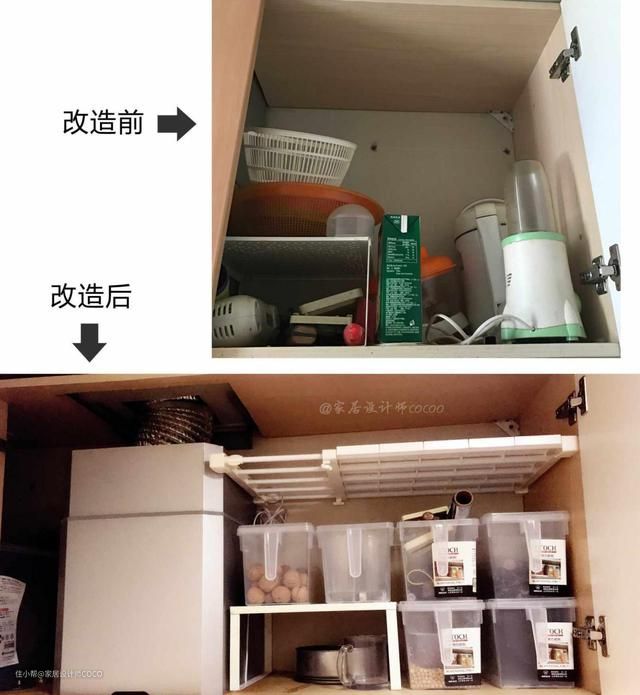 接下来就是解决橱柜内部收纳不足的问题。
