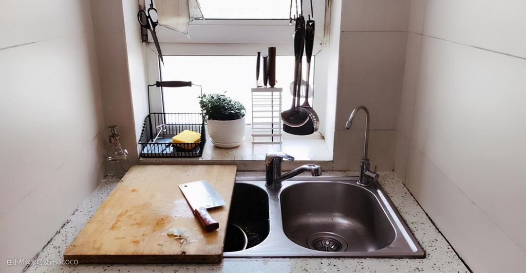 由于空间的不足,男主的妈妈每次做饭切菜,只能把案板放在洗菜盆上方,狭小的操作空间,导致每次做饭都要费半天的功夫,非常不顺手。